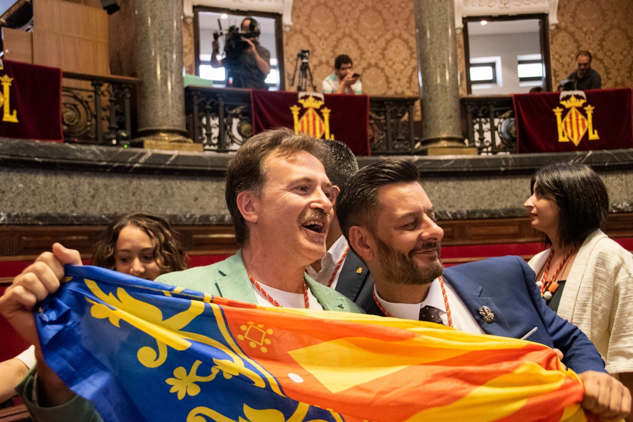 Los palcos están llenos de invitados, algunos incluso deben quedarse fuera. Pronto, tal es la acumulación de gente que contrarresta el frescor inicial del aire acondicionado. Muchos de los que, en pocos minutos, jurarán su cargo de concejal en el ayuntamiento de valencia reconocen a sus familiares y los saludan. Coinciden todos en que es un acto especial, aunque se parece mucho a 2015: la vara de mando ha estado en las manos de Joan Ribó apenas unos segundos.