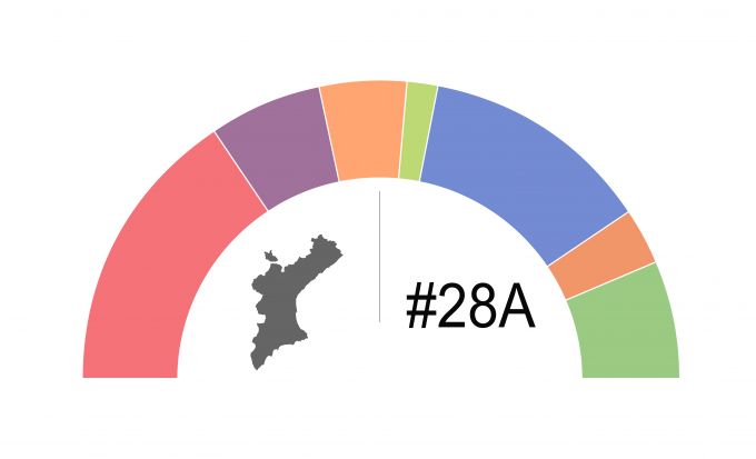 Respecto a 2016, el PSOE mejoraría con el aumento de 6 a 10 escaños. También esta encuesta augura un descenso al PP, con 8 diputados frente a los 13 de las pasadas elecciones. De nuevo, UP-EUPV y Compromís conseguirían peores resultados que con la confluencia de 2016. La formación morada obtendría entre 3 y 4 escaños, y Compromís entre 2 y 3.