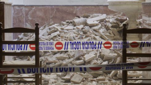 Zona acotada tras el derrumbe en la iglesia parrolquial de Sollana