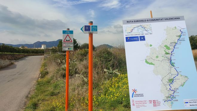 Una ruta que une Cádiz y Atenas en bicicleta y que atraviesa de sur a norte la Comunitat Valenciana. Así es la ruta ciclista internacional Eurovelo-8 que la Generalitat Valencia está adecuando con una inversión que ronda los 3,6 millones de euros.
