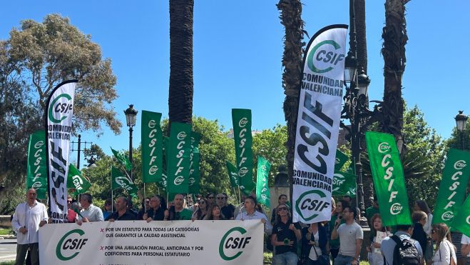 La Central Sindical Independiente y de Funcionarios (CSIF), se ha concentrado este martes frente a la Delegación del Gobierno en Valencia. Los manifestantes se han sumado a las protestas convocadas a nivel nacional. Su objetivo es exigir al Ministerio de Sanidad que cumpla sus compromisos sobre la reforma del Estatuto Marco del personal sanitario.