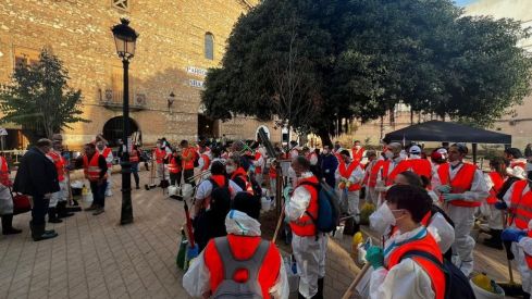 Para ello, cuenta con el apoyo de la Unidad Militar de Emergencias (UME) y de Cruz Roja. En concreto, dispone de 160 efectivos de la UME, que se ocupa de trasladar en camiones la ayuda a los puntos habilitados en los municipios afectados, y de 400 voluntarios de Cruz Roja que dan apoyo tanto en el Almacén como en los puntos municipales de reparto.