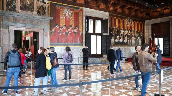 Además de la tradicional jornada de puertas abiertas que cada año invita a que la ciudadanía descubra el interior del Palau de la Generalitat, Mazón ha anunciado una gran novedad que tendrá lugar en esta emblemática ubicación. Se trata de una experiencia inmersiva en las obras pictóricas del histórico edificio: ‘El Tribunal de las Aguas de Valencia’, de Bernardo Ferrándiz, y ‘La Herida del Rey don Jaime en la Conquista de Valencia’, de Salvador Martínez Cubells.