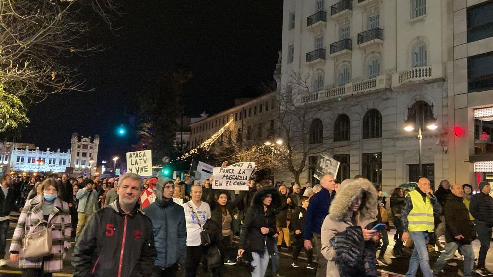 Una manifestación ha discurrido este domingo por las calles del centro de València para mostrar su rechazo al conocido como pasaporte covid, en vigor en la Comunitat Valenciana desde el pasado 4 de diciembre, así como a la vacunación infantil.