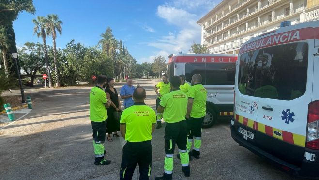 El traslado de los últimos pacientes ingresados en el Hospital Doctor Moliner se ha efectuado en ocho ambulancias de la Conselleria, que han realizado un trayecto de 26 kilómetros hasta el Hospital Milata-Quart.