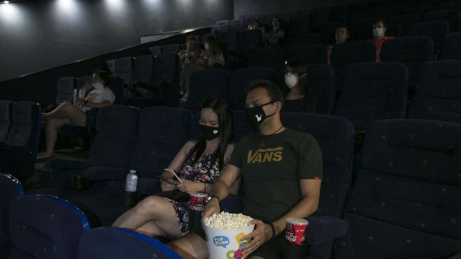 En los cines, teatros y auditorios, si se permite el consumo de comida y bebida en sala, es necesario dejar un asiento libre de distancia en la misma fila entre personas o grupo de personas no convivientes. Fuera de este supuesto, el aforo está decretado al 100%.