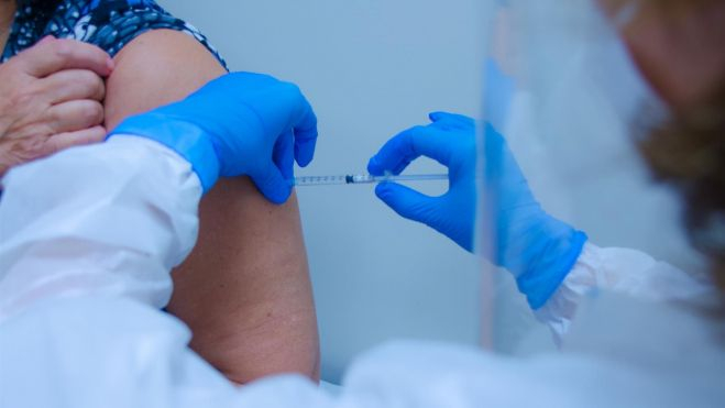 Un sanitario vacuna a una mujer frente a la Covid-19