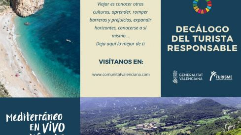 El Decálogo del Turista Responsable de la Comunitat Valenciana difunde 10 principios para que los y las turistas puedan disfrutar de la Comunitat Valenciana con sugerencias para contribuir a fomentar un turismo responsable y sostenible:
