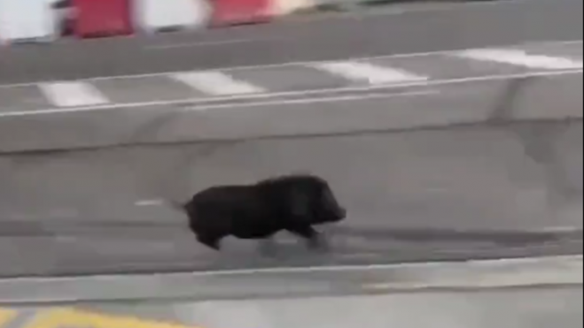 La Policía intenta atrapar a un jabalí que corre por la carretera