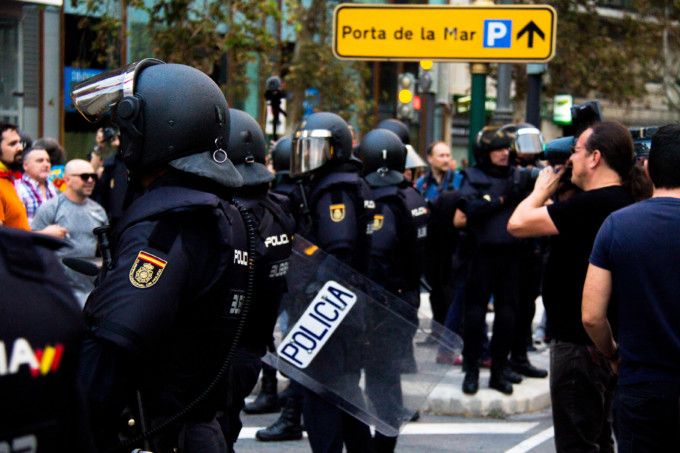 La Policía Nacional ha conseguido abrir paso entre la muchedumbre y ha escoltado a los manifestantes hasta la calle Colón, donde la cabecera de la Comisión del 9 de Octubre esperaba. Los insultos y los cánticos contra unos y otros no ha cesado en todo el trayecto. En él, los agentes han hecho uso de las porras para disolver a algunos congregados con banderas de España.