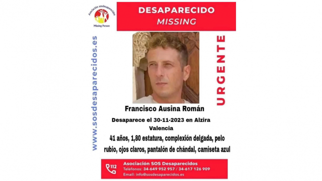 El pasado 30 de noviembre, Francisco Ausina Román, vecino de Alzira, desapareció sin dejar rastro, generando preocupación en la comunidad local. Francisco, de 41 años, tiene una estatura de 1,80 metros, complexión delgada, pelo rubio y ojos claros. En el momento de su desaparición, vestía pantalón de chándal y camiseta azul.