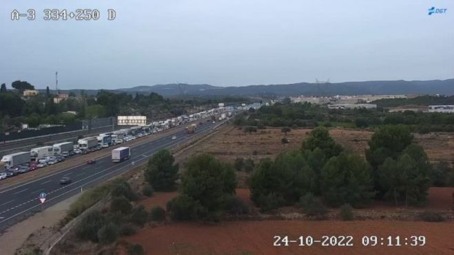 El punto más conflictivo se encuentra en la A-3, donde se han registrado tres accidentes: a las 7:25 horas, 8:02 horas y 8:55 horas. El último de ellos ha obligado a cortar el carril derecho y el carril central a la altura de Chiva, provocando un embudo que complica la circulación en hora punta.