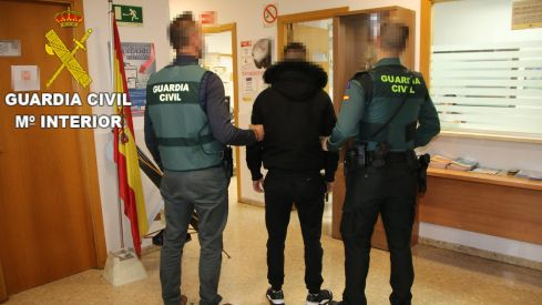 Dos agentes de la Guardia Civil, con uno de los detenidos