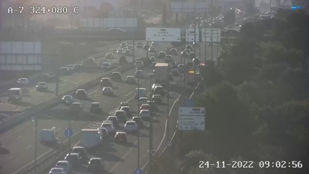 En la V-30 hay dos kilómetros de cola entre el kilómetro 8 y el 10, entre el Barrio de la Luz y Mislata y, finalmente, en la A-7 hay 2,5 kilómetros de cola entre La Cañada y Cruz de Gracia, del punto kilométrico 327 al 324.5.