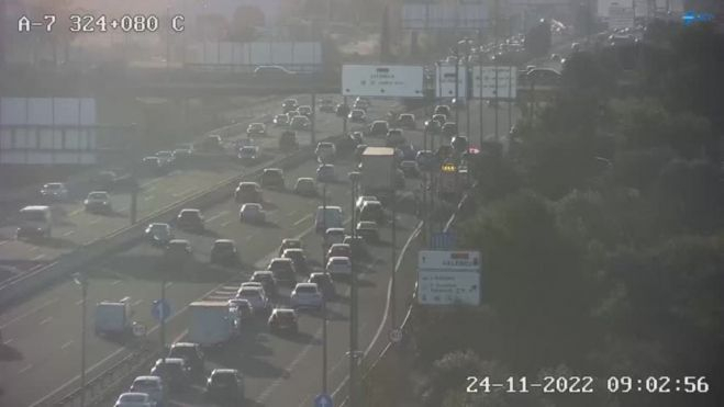 Entre todas estas retenciones, en la mañana de este jueves 24 de noviembre hay alrededor de 16 kilómetros de colas en los accesos y salidas de València.