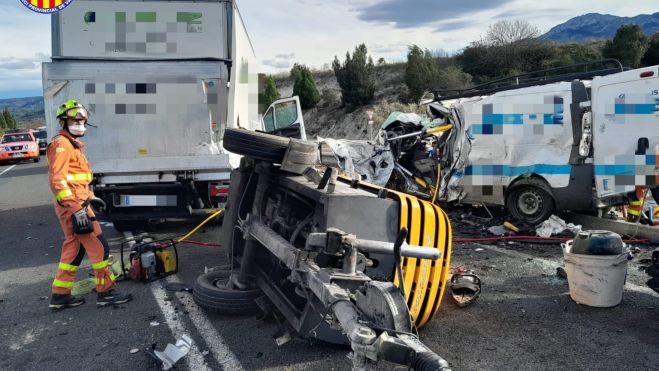 Hasta el lugar del suceso, se han desplazado dos dotaciones del Consorico Provincial de València, de los parques de bomberos de Xàtiva y Ontinyent y también sargentos de Gandia y Alzira. Precisamente, han sido los bomberos quienes han tenido que excarcelar a varias personas que habían quedado atrapadas en sus vehículos tras el choque.