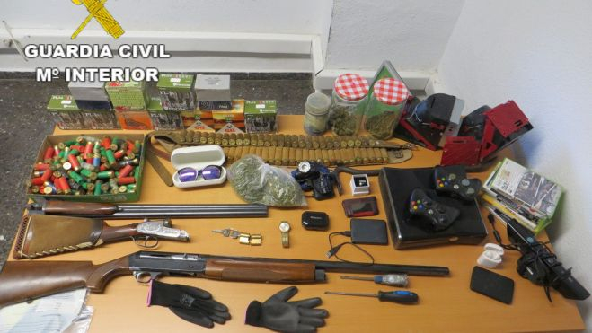 En este registro, los agentes intervinieron dos armas de fuego largas de ánima lisa sustraídas y su documentación, 500 cartuchos de escopeta, y una plantación “indoor” con 47 plantas de marihuana y varios objetos de valor. Igualmente, fueron intervenidos diferentes efectos utilizados para el buen desarrollo y crecimiento de las plantas como ventiladores, extractores, filtros, lámparas etc…