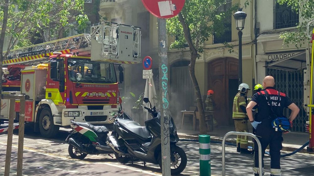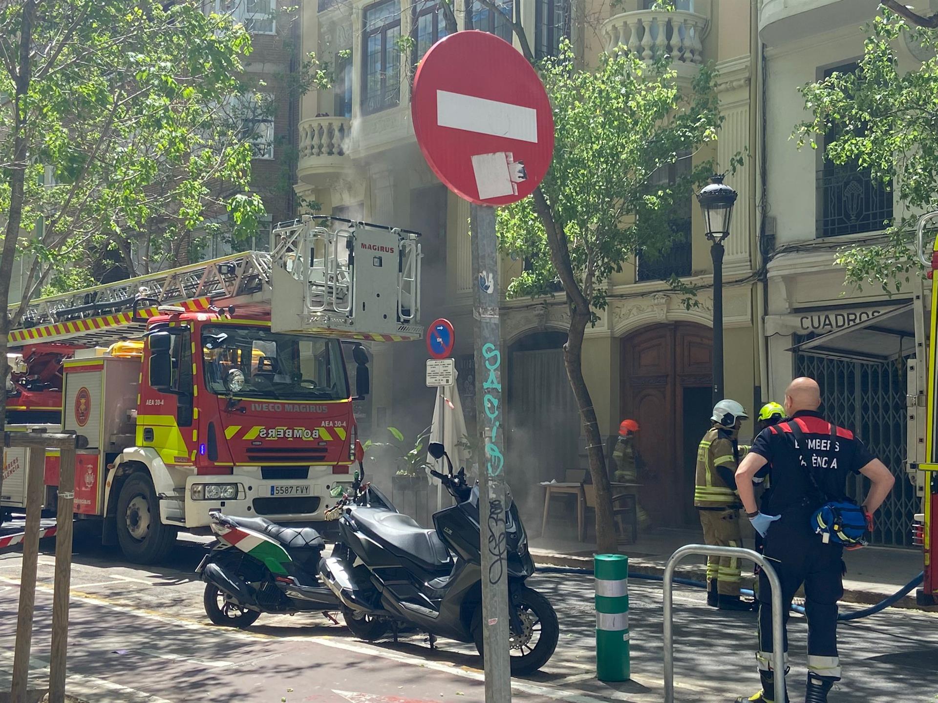 Efectivos del cuerpo municipal de Bomberos del Ayuntamiento de València han intervenido en el mediodía de este sábado para controlar un incendio que se ha desatado en un restaurante situado en pleno centro de la capital del Turia.