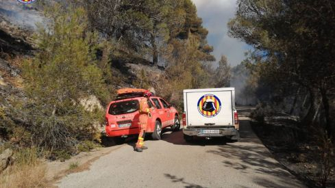 Debido al incendio, el vigilante del observatorio del Mondúver y nueve excursionistas que estaban en la cima de esta montaña han tenido que ser evacuados en un medio aéreo.