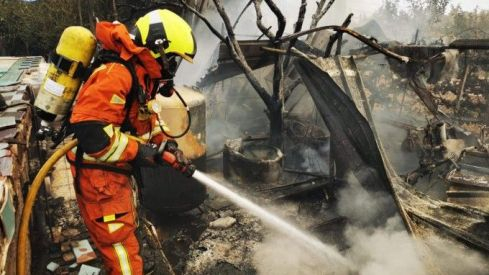 Los bomberos del CPBV intervienen en un incendio de vivienda en Chiva