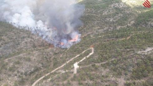 Después se han sumado dos air tractor del Ministerio con base en Requena y tres HLC más a las tareas de extinción, dos de ellos con brigadas teletransportadas y dos unidades más del Consorcio de Bomberos de Valencia.