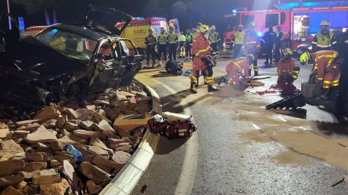 Tras el choque, la conductora del vehículo accidentado quedó atrapada en su interior y hasta el lugar del suceso se desplazaron efectivos de bomberos para excarcelar a la mujer implicada en el incidente. Unas tareas de excarcelación que han sido de gran dificultad debido al grave estado del coche después del impacto.