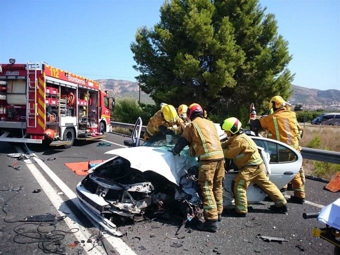 Los bomberos del parque de Benidorm, movilizados en tres vehículos, han abierto el coche tanto de forma lateral como por el capó para sacar a este hombre, vecino de la comarca.
