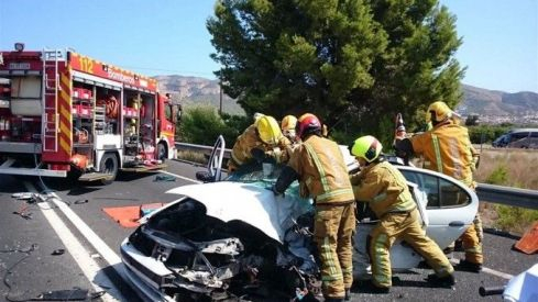 Un conductor de entre 60 y 70 años ha sido rescatado este sábado del interior de su coche tras chocar con un camión en la N-332, a la altura de Benidorm (Alicante). El hombre ha resultado afectado con heridas de diversa consideración, según ha informado el Consorcio Provincial de Bomberos.