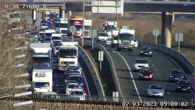 También en la CV-30 se han acumulado los vehículos desde primera hora de esta mañana, ya que ha habido más de dos kilómetros de atascos entre las localidades de Quart de Poblet y Paterna.