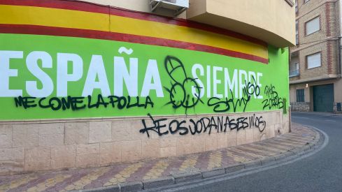 La sede del partido Vox en la localidad de Nàquera (El Camp de Túria) ha amanecido hoy domingo 25 de junio con pintadas en su fachada. Así lo ha denunciado Vox Valencia a través de su perfil de Twitter y tal y como se aprecia en las dos fotografías que acompañan la publicación en esta red social, las pintadas, con mensajes despectivos y contrarios a esta organización política, están hechas con esprai de color negro intentando tapar la fachada de la sede en la que aparece escrita la consigna "España Siempre".