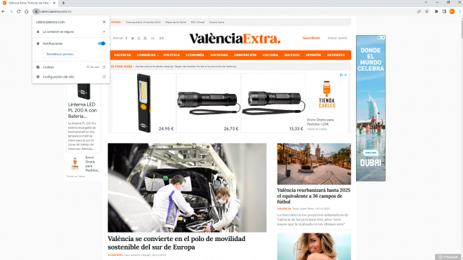 Para desactivar las notificaciones push, tan solo debes entrar en tu navegador y buscar el medios de comunicación o web. Lo más sencillo es clicar sobre el candado que aparece a la izquierda de la barra de la url y desactivar las notificaciones.