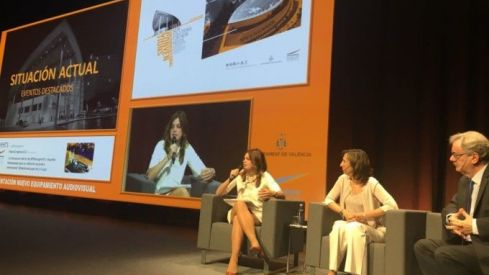 La concejala de Desarrollo Económico Sostenible, Sandra Gómez, ha presentado hoy los nuevos equipamientos audiovisuales del Palacio de Congresos, que sitúan a este espacio de referencia entre los más innovadores de todo el Estado. Tras las inversiones de 2016, con una inyección de 450.000 euros, el Ayuntamiento de València ha focalizado la segunda fase del proyecto en convertir el Palacio en un edificio competitivo tecnológicamente, a la altura de los centros congresuales más avanzados.