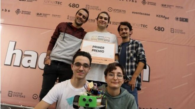 Estudiantes de Ingeniería Electrónica de la Universitat Politècnica de València (UPV) y de Ingeniería Informática de la Universidad de Murcia han ganado de la cuarta edición de Hackathon Castellón con un robot autónomo encargado de transportar residuos y actuar frente a obstáculos.