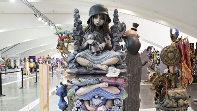 Tras la lectura del veredicto, las comisiones falleras han ido pasando por la Exposición del Ninot para recoger sus respectivas figuras que formarán parte de las fallas grandes que se plantará esta noche. Esta figura forma parte de “Onírica”, la propuesta 2026 de esta comisión del sector Ruzafa B.