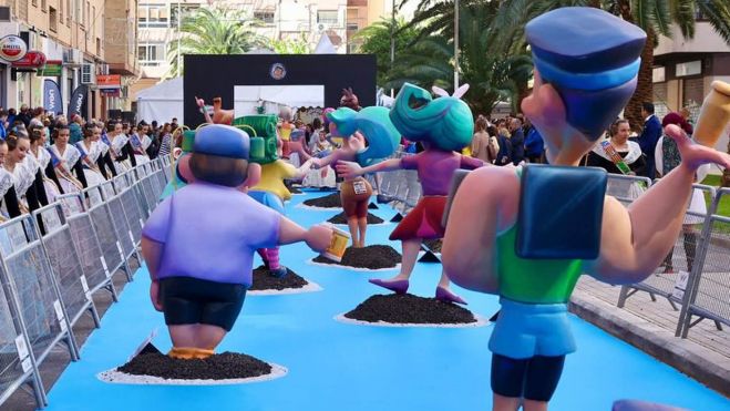 La Falla Manuel de Falla-Tamarindos ha hecho historia al convertirse oficialmente en la falla más larga jamás plantada en València. Con una extensión de 42,195 metros, la creación, dedicada al Maratón de València, combina ingenio, creatividad y un claro guiño a la distancia oficial de la prueba atlética. Bajo el lema “World Record”, el monumento no solo sorprende por sus dimensiones, sino también por su originalidad y detalle en la representación de la carrera.