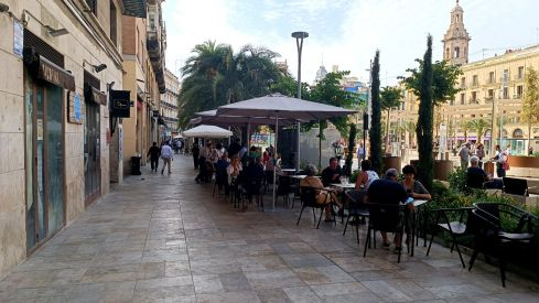 En la plaza de la Reina hay en la actualidad 19 establecimientos con terraza. “Los espacios están delimitados desde hace años y con la peatonalización de la plaza se decidió que las dimensiones continuarían siendo las mismas, con el objetivo de que realmente ahora haya más espacio efectivo peatonal, una petición vecinal histórica para este tramo de la ciudad”, ha dicho la regidora Lucía Beamud.