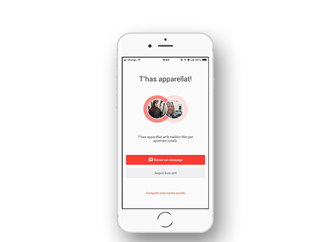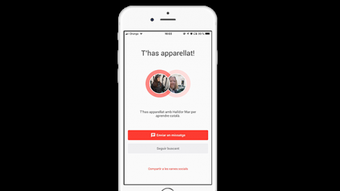 Pero, además, la Plataforma per la Llengua lanza el reto de encontrar una #parella2punt0. Y es que uno de los objetivos finales de Apparella't es que, después de contactar e intercambiar mensajes con tu pareja lingüística a través de la aplicación móvil, se pueda dar un paso más en esta experiencia de aprendizaje utilizando otras herramientas que facilitan el intercambio de conocimientos lingüísticos. Así, siempre de manera voluntaria, se puede optar por videollamadas o conversaciones cara a cara que ayudan a conseguir una mayor fluidez en la práctica del idioma.