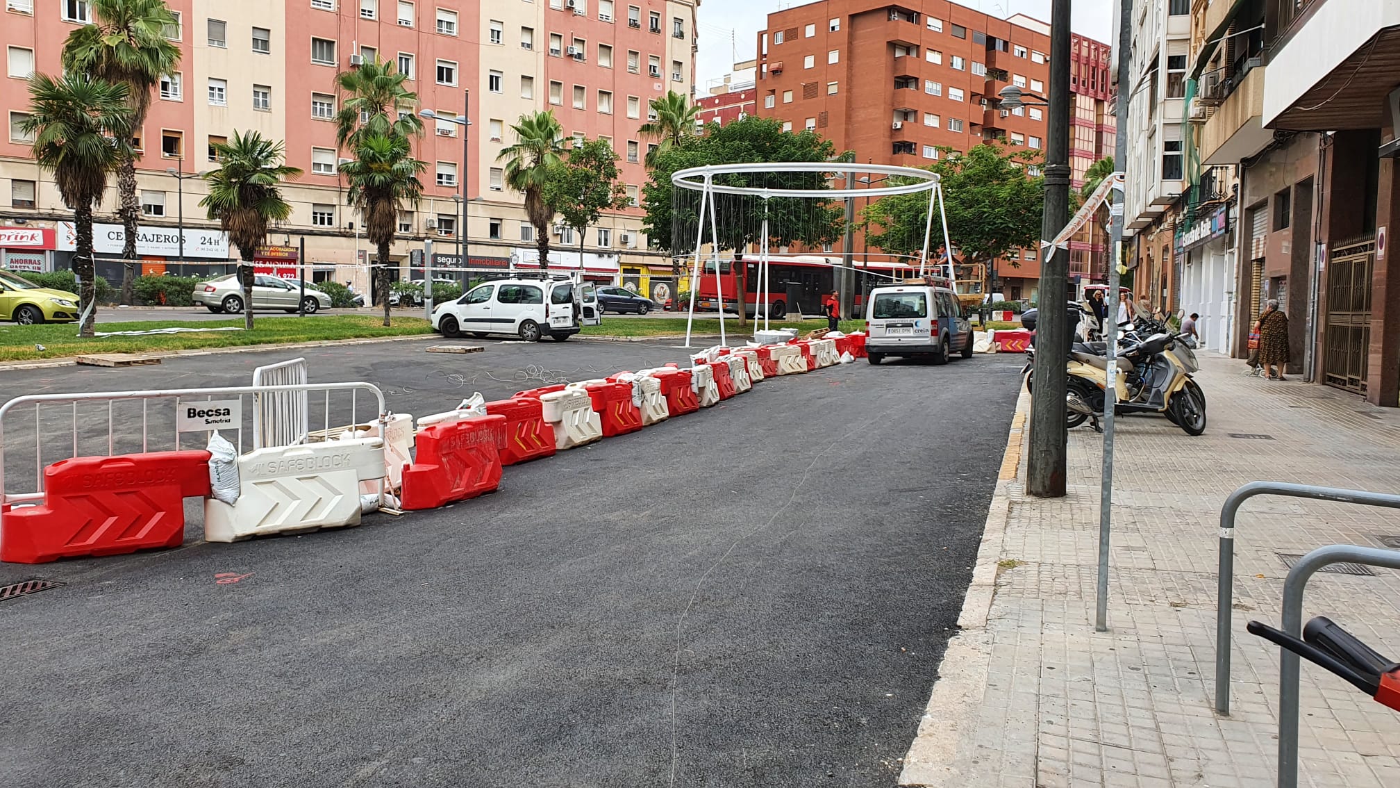 Continúan las obras en las avenidas Pérez Galdós y Giorgeta, una actuación de urbanismo táctico que no solo pacificará el entorno, sino que, además, contará con nuevos espacios públicos, gracias a la creación de dos nuevas plazas en los cruces con las calles Jesús y Cerdá y Rico. De hecho, esta mañana, ha comenzado la instalación de una pérgola en la plaza de la calle Jesús.