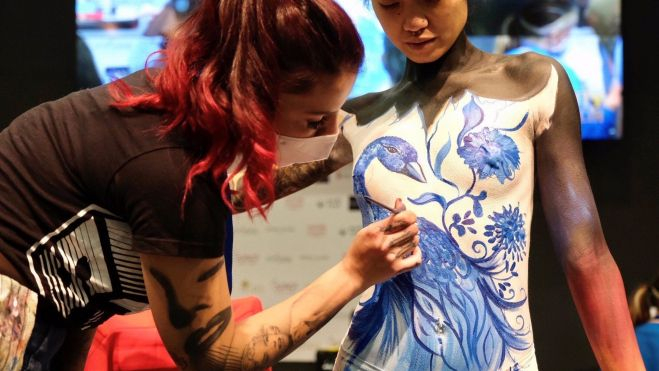 Durante la mañana, Feria Valencia ha acogido el Campeonato de Bodypainting en el que participan verdaderos expertos del maquillaje corporal. En esta edición, la temática elegida ha sido la porcelana china, todo un reto para los participantes a la hora de mostrar su talento y técnica, según ha relatado Feria Valencia en un comunicado.