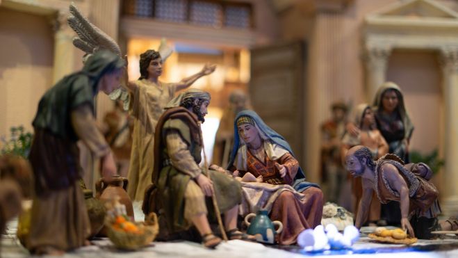 El Belén de la Parroquia de San Nicolás está montado en la capilla del Beato Gaspar Bono y tiene un fin solidario, puesto que como cada año, esta obra recauda dinero destinado al comedor social del Colegio de Nuestra Señora de los Desamparados de Nazaret (Valencia).