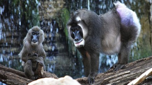 Rafiki, el dril del Bioparc, junto a una de sus crías