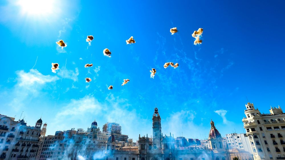 Para empezar, el sábado, día 13 de mayo, la capital del Turia disfrutará de dos citas con la pólvora. De esta manera, en la procesión del centenario de la coronación de la Virgen, que incluirá un acto central ante el Pont del Real, tendrá lugar un espectáculo pirotécnico. Sin embargo, el plato fuerte vendrá por la noche, a las 23:30 horas, cuando la pirotecnia Gironina disparará un gran mascletá nocturna en la plaza del Ayuntamiento de València, que volverá a sorprender a valencianos y visitantes.