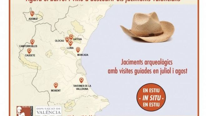 El Área de Cultura y el Museu de Prehistòria de València han diseñado una estimulante campaña: Agafa el teu barret i vine a conèixer els jaciments valencians, donde se presenta toda la oferta de visitas guiadas a los yacimientos. Según el diputado de Cultura, Xavier Rius, “el verano y el periodo de vacaciones son el momento idóneo para visitar in situ los yacimientos arqueológicos y las tareas de excavación e investigación que se realizan a su alrededor”. Rius también celebra que “el pueblo valenciano disponga de un legado histórico tan amplio y de una herencia cultural de tanta relevancia, donde el papel activo del Museu de Prehistòria de la Diputació resulta fundamental”, así que, para Rius “es necesario seguir trabajando en la línea de la difusión de los yacimientos para que la gente comprenda y visibilice el gran trabajo de investigación que hacen nuestros equipos de arqueología”.