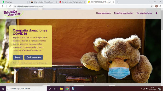 Sin duda, una buena iniciativa que permitirá a aquellas personas interesadas colaborar desde casa. Asimismo, también se ha habilitado la posibilidad de "Pedir donación" para que todas aquellas personas que lo necesiten, puedan solicitar ayuda y "recibir la solidaridad de otros ciudadanos y ciudadanas".