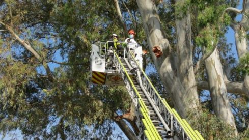 El Organismo Autónomo Municipal de Parques y Jardines, encargado de la conservación del Parque Lineal de Benimàmet, cuenta para este operativo especial con la ayuda de los bomberos, ya que se requiere una plataforma elevadora que facilite a los operarios las tareas de poda y saneamiento. Los Bomberos Municipales han aportado una plataforma para permitir a los operarios subir.