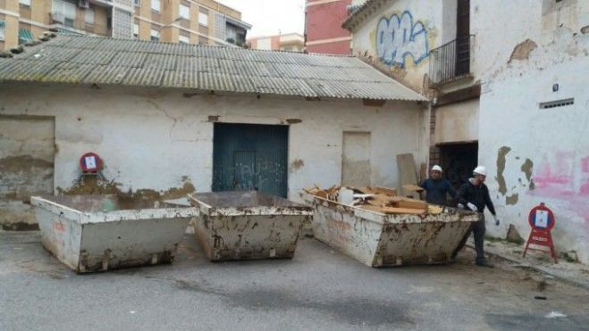 Las obras que acaba de iniciar el Ayuntamiento se centran en una primera fase en la limpieza del entorno, el desescombro manual, el desmontaje de elementos inestables y los apuntalamientos necesarios. Estos trabajos incluyen el desmontaje del falso techo de cañizo y el tapado de huecos para evitar la entrada de palomas al interior de las alquerías.
