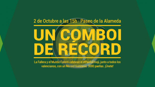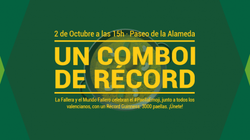 Valencia se prepara así para entrar en el Libro de los Records: concentrando el mayor número de cocineros de paella: 3000. Junto con otros 3000 pinches, intentarán cocinar al mismo tiempo durante 30 minutos el plato más emblemático y representativo de la cultura gastronómica española: La Paella. El lugar de la cita: EL Paseo de La Alameda de Valencia. O mejor dicho, cualquier otro lugar del mundo en que un cocinero comparta su preparación de paella con el hashtag #ComboiDeRecord