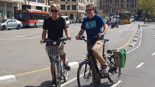El regidor ha explicado al urbanista canadiense-danés «las medidas que hemos impulsado en estos tres años» y «los avances que tenemos previstos para el futuro», con el objetivo de que «todas estas mejoras se afiancen en el presente y en el futuro de la ciudad». Colville-Andersen, asesor en 115 ciudades de todo el mundo en materia de urbanismo sostenible, ha señalado que València sigue «la tendencia internacional de crear una ciudad mejor con un sistema de transporte más eficiente», en la línea de otras urbes como Vancouver y Toronto (Canadá) o Melbourne (Australia). El consultor ha asegurado que «la construcción de una infraestructura para bicicletas es una señal de que València es una ciudad moderna».