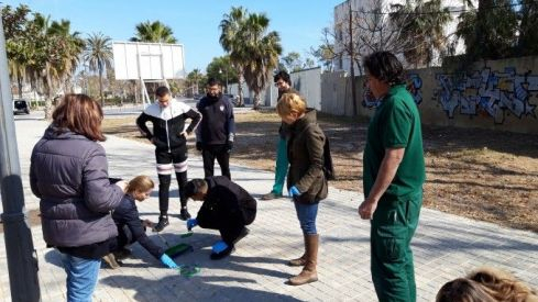 La concejala de Medio Ambiente, Pilar Soriano, ha participado hoy en la pintura de este símbolo, «una propuesta de las entidades vecinales para reforzar el sentimiento de barrio»; y ha recordado al vecindario implicado con la campaña «Haz tuyo un alcorque» que los técnicos municipales «darán consejos expertos para tener cuidado de las plantas sembradas, y que hay el alcance de todo el mundo un teléfono por si se detecta algún problema en el alcorque, el árbol o las plantas».