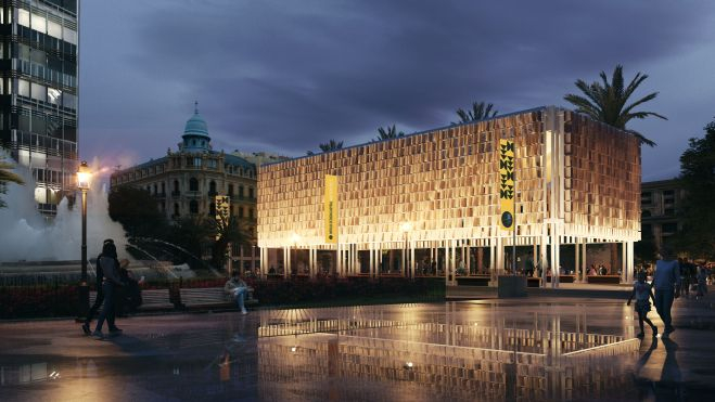 Será el epicentro de la programación de València Capital Mundial del Diseño 2022. Acogerá actividades para todos los públicos, una zona expositiva y encuentros de profesionales, empresas y entidades del sector. Ágora València es el nombre del pabellón que se está construyendo en la plaza del Ayuntamiento con el objetivo de acercar la creatividad a la ciudadanía y convertirse en escaparate del diseño valenciano. En 2023 se trasladará a la Marina de València, donde se localizará el futuro Distrito del Diseño La instalación, con unas dimensiones en planta de 24 por 10 metros y una altura de 10 metros, está hecha con vareta de madera y cerámica. El techo, realizado por el artista fallero Manolo García, simboliza las olas del mar Mediterráneo y se iluminará por la noche como si fuera un faro. Es un proyecto sostenible, en el que se ha empleado un 50 % de materiales reciclados, se ha ahorrado un 70 % de agua y utilizará tecnología led y de bajo consumo.